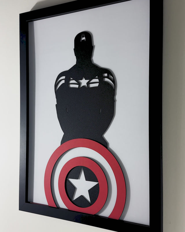 This stunning Captain America piece has a blackout motif that gives one of Marvel's favorite hero's a bold look, with the iconic shield popping out at you in red. Make it the centerpiece of any Marvel fan's decor!